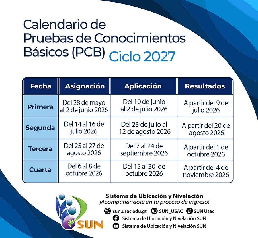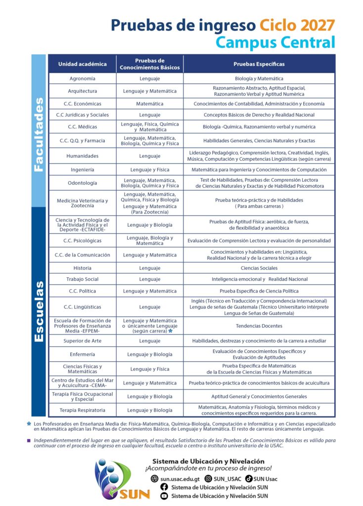 Para obtener información de las Pruebas Específicas consulta los medios oficiales de comunicación del Centro o Instituto Universitario al que deseas ingresar. Datos de contacto de unidades académicas USAC